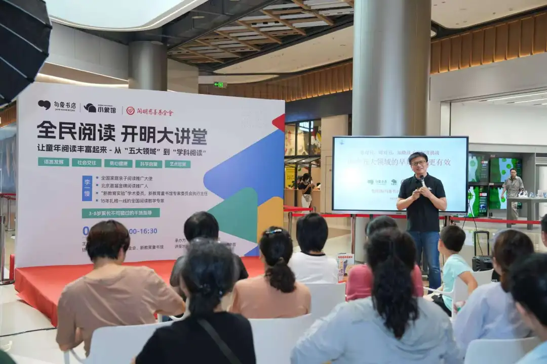 22日,基金会联合学大教育句象书店开展“全民阅读·开明大讲堂”活动,特邀全国妇联家庭亲子阅读大使李一慢老师作《让童年阅读丰富起来——从“五大领域”到“学科阅读”》主题讲课,线上、线下同步开讲,5348人次师生、家长线上观看;
