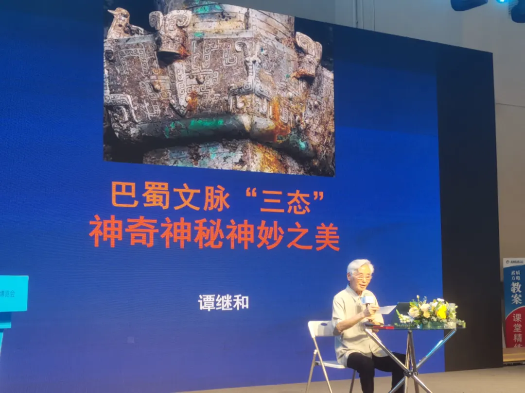 在讲座中,85岁的谭老先生侃侃而言。在他看来,巴蜀文化最大的特点便在于其自然与人文相结合的“三神之美”——生态神奇之美、文态神秘之美、心态神妙之美。从其源头陇蜀文化发展到今日巴蜀文化,其历史文脉和文化基因历数千年而不绝传承至今,塑造了今日川渝地区的精神面貌。他说,巴文化和蜀文化二者各自有来源,又在几千年的历史岁月中融合在一起,亲如兄弟。既是兄弟,就会有合作也有竞争。巴蜀文化的精神内核对当下打造成渝双城经济圈发展有着重要的精神底蕴。