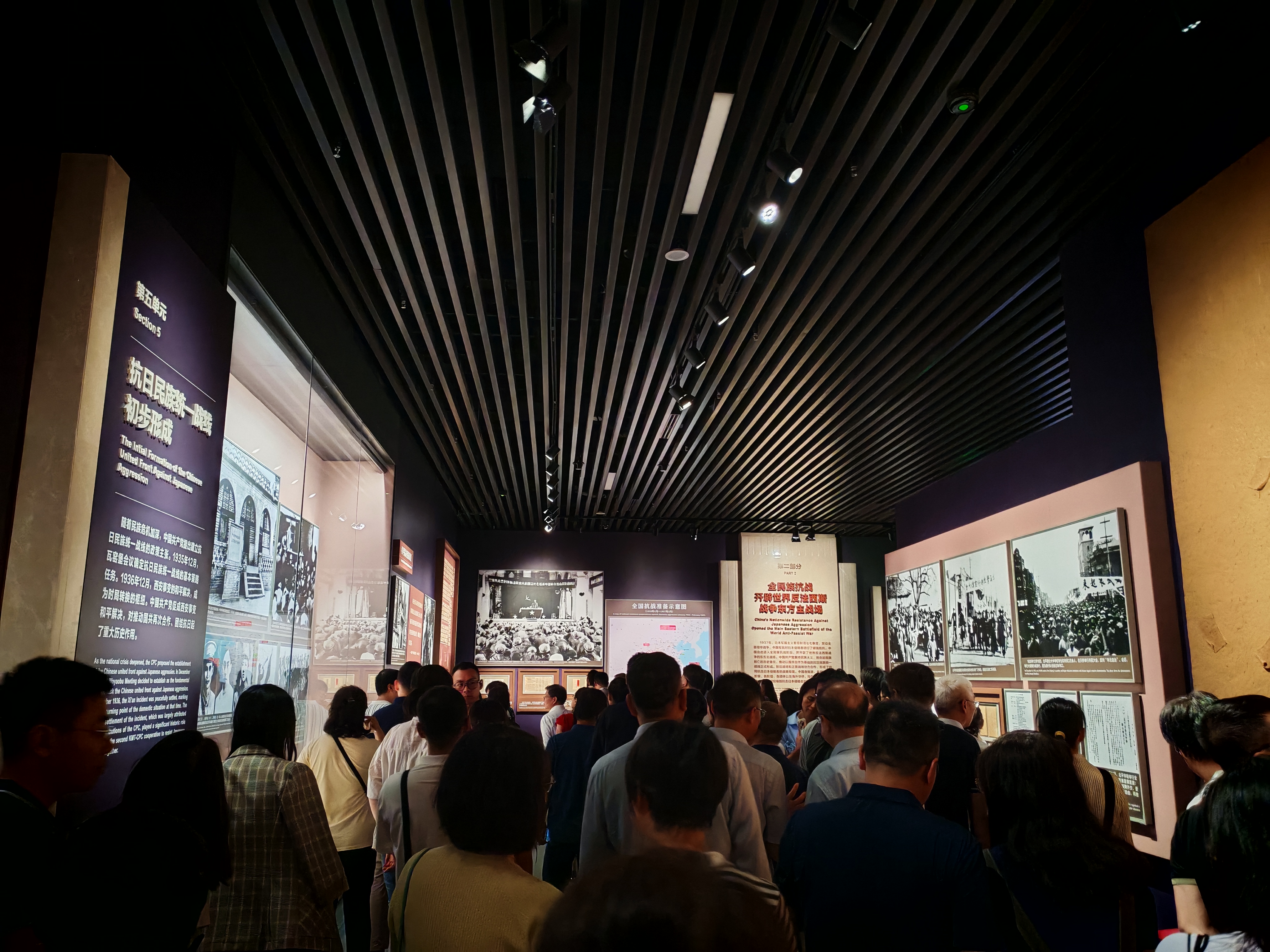 在庄严肃穆的纪念馆内,大家怀着崇敬的心情,参观了《为了民族解放与世界和平——纪念中国人民抗日战争暨世界反法西斯战争胜利80周年》主题展览。展览以“铭记历史、缅怀先烈、珍爱和平、开创未来”为主题,分为“奋起抵抗 中国人民打响世界反法西斯战争第一枪”“全民族抗战 开辟世界反法西斯战争东方主战场”等8个部分,从东北沦陷的悲愤开端,到全民族抗战的激昂抗争,再到最终胜利的扬眉吐气,通过丰富多样的展陈手段,让大家沉浸式感受抗战的恢宏史诗。