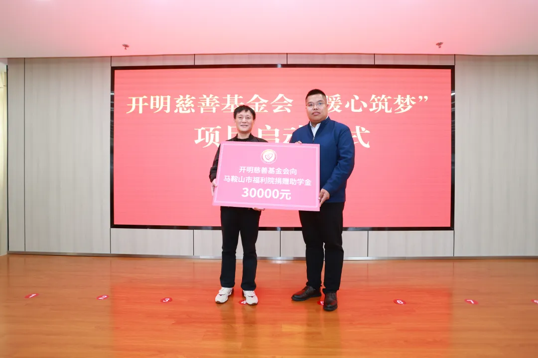 同时为来自马鞍山特殊教育学校、霍里中心小学、市职业技术学院等20名福利院学生提供每人1500元助学金,共计发放助学款3万元。