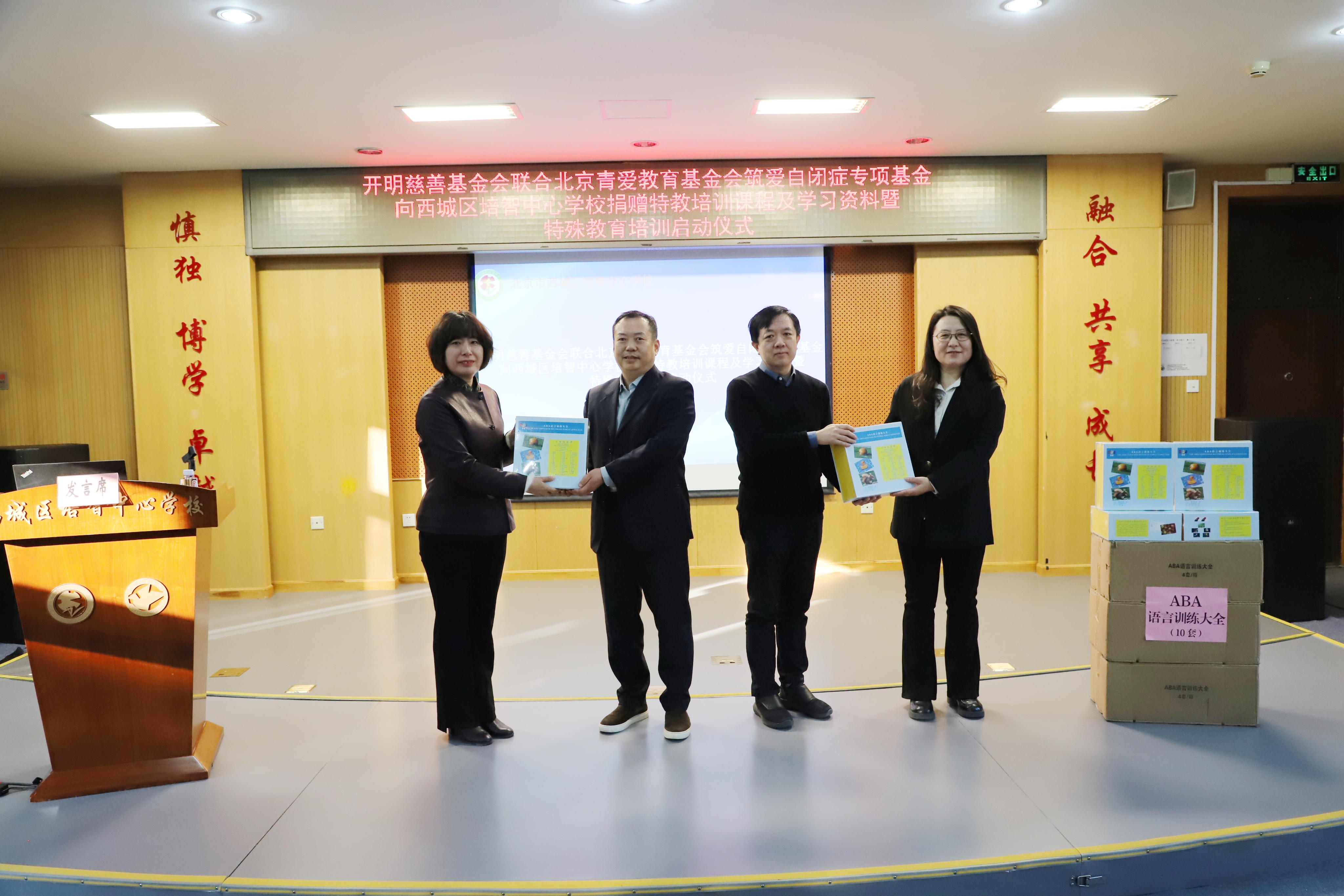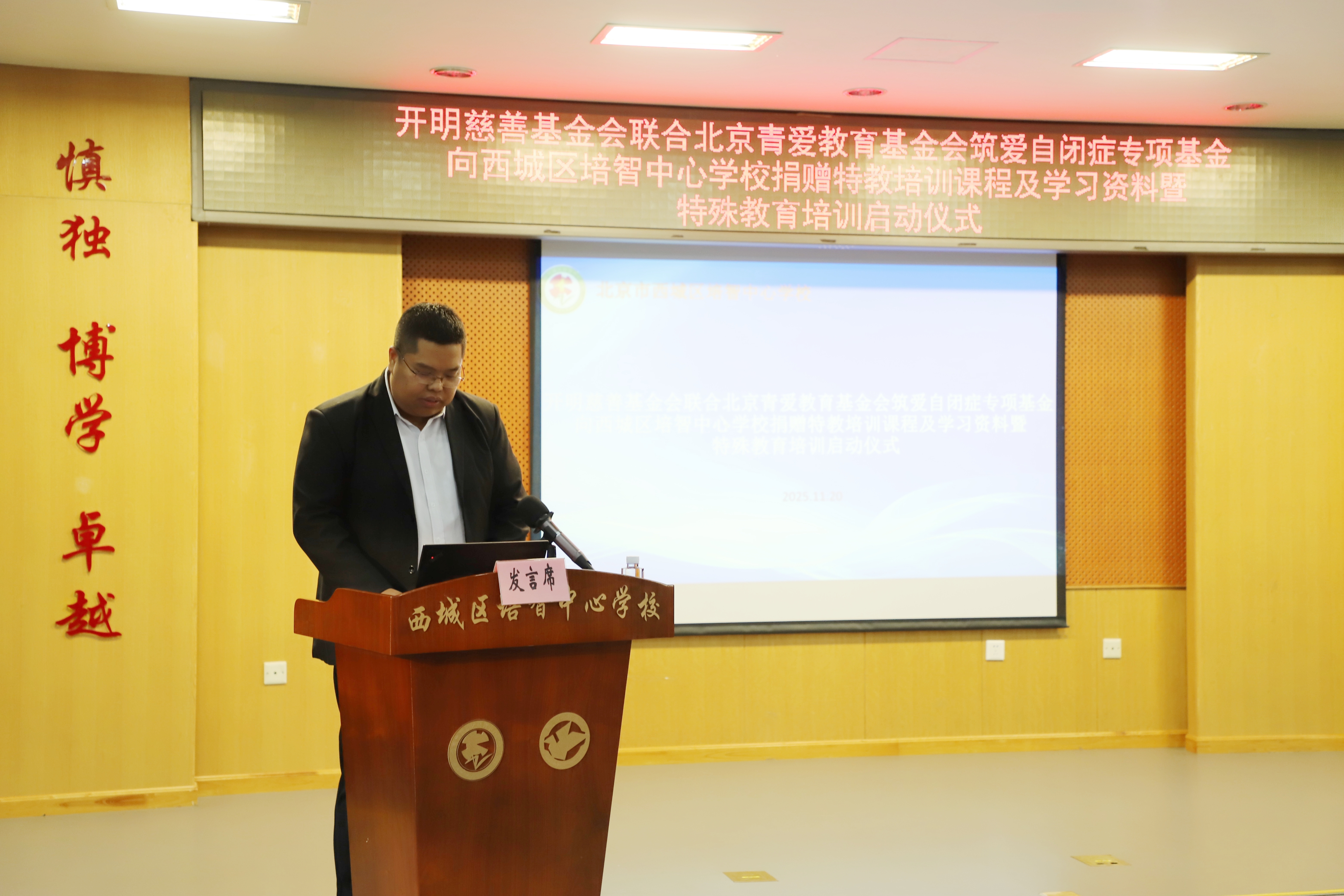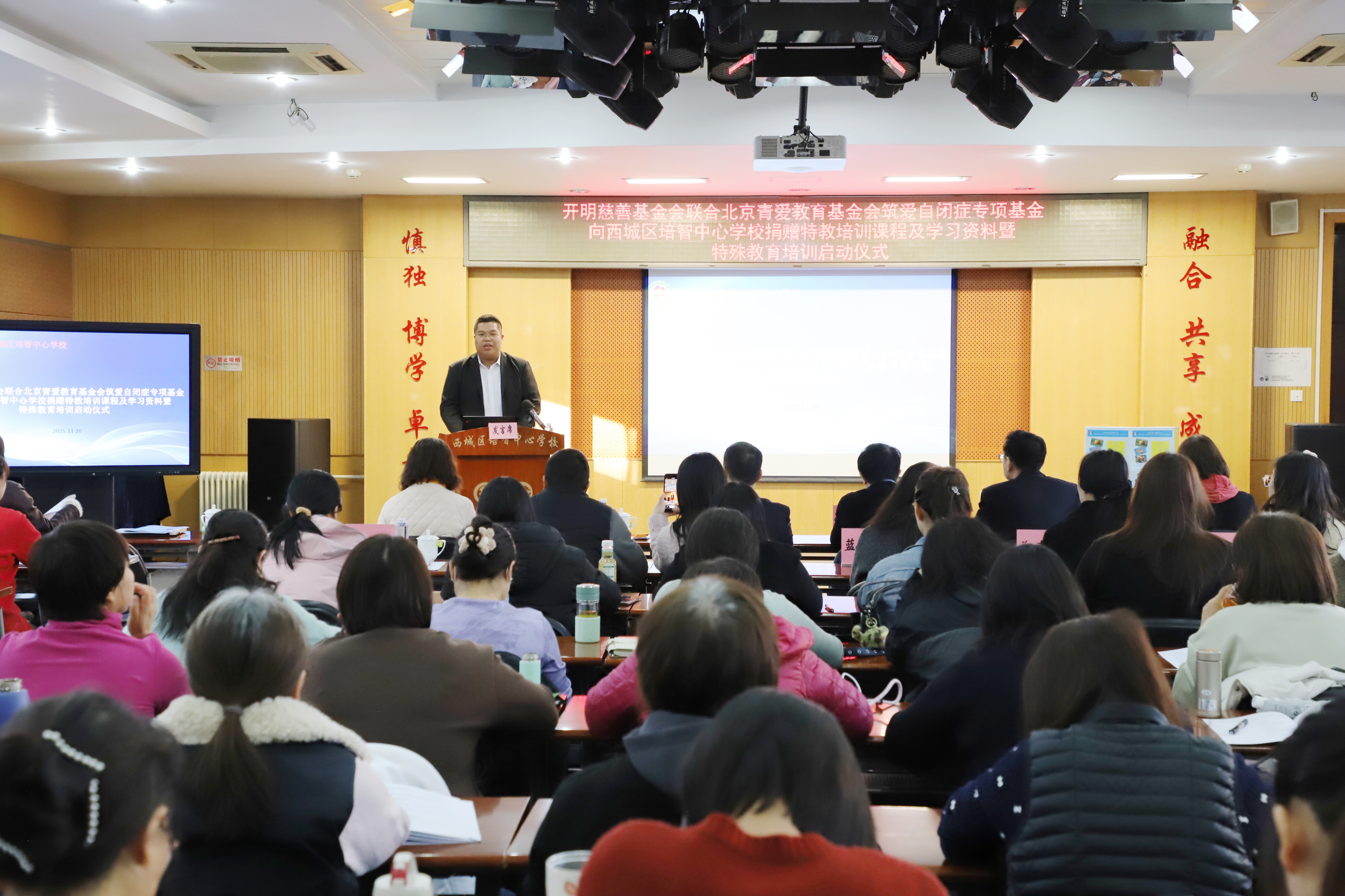 11月21日上午,开明慈善基金会联合北京青爱教育基金会筑爱自闭症专项基金向西城区培智中心学校捐赠特教培训课程及学习资料暨特殊教育培训启动仪式在培智学校举行。活动聚焦"一老一小、一困一残"等群体现实需求,通过专业教育资源赋能,为特殊儿童教育和困难群体帮扶提供精准支持。