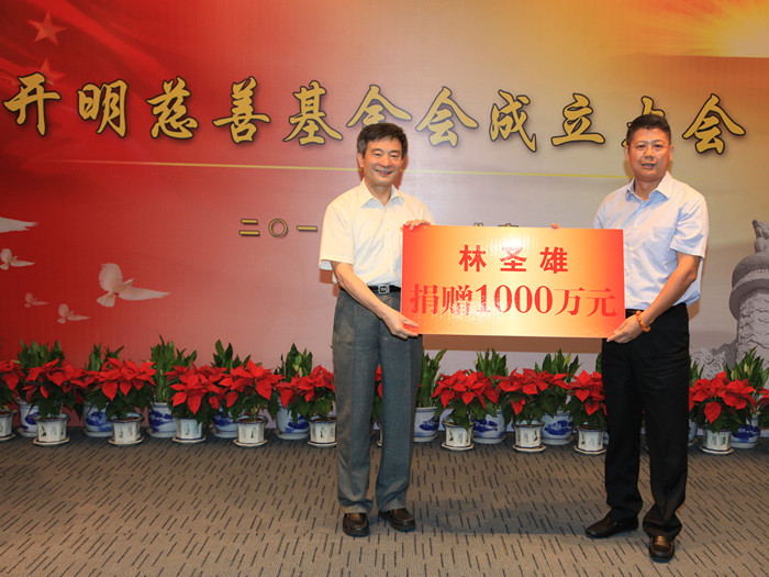 开明慈善基金会罗富和理事长接受林圣雄先生的捐赠